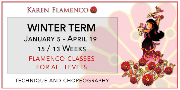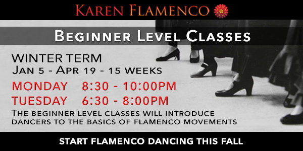 Karen Flamenco is a progressive learning dance academy which emphasizes performance, stressing technique, strength, individual and artistic expression. The program has a strong foundation in traditional, clasico & modern flamenco dance forms. Dancers are taught in a comfortable and non-intimidating atmosphere with a class limit of ten dancers. With small class sizes dancers will receive one on one encouragement and constructive criticism as each dancer will have different, specific needs. Dance classes are offered to men, women and children of any age and level. No previous dance training is required to begin.