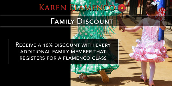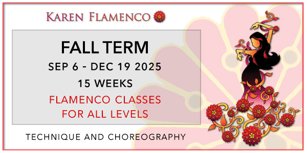 Karen Flamenco is a progressive learning dance academy which emphasizes performance, stressing technique, strength, individual and artistic expression. The program has a strong foundation in traditional, clasico & modern flamenco dance forms. Dancers are taught in a comfortable and non-intimidating atmosphere with a class limit of ten dancers. With small class sizes dancers will receive one on one encouragement and constructive criticism as each dancer will have different, specific needs. Dance classes are offered to men, women and children of any age and level. No previous dance training is required to begin.